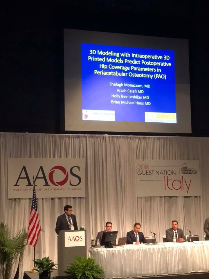 - Monazzam S, Calafi A, Haus B. 3D Modeling with Intraoperative 3D Printed Models Predict Postoperative Hip Coverage Parameters in Peri-Acetabular Osteotomy. AAOS 2018 Podium